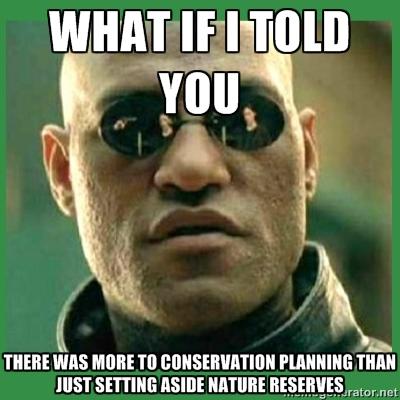 Don’t get me wrong, reserves are still important as an intensive area for conservation. They’re also already more flexible than they’ve been in the past (compare Yellowstone vs. The Lakes District for an example), but it is a big commitment to create a reserve and some areas will always miss out.