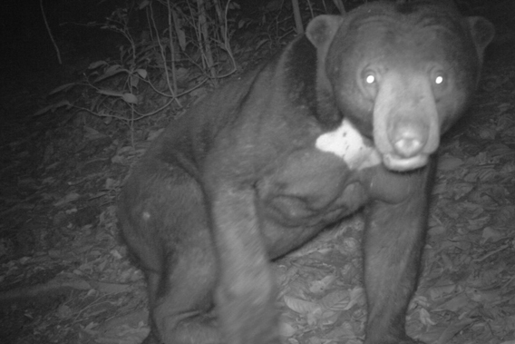 The sun bear (Ursus malayanus) is listed as Vulnerable by the IUCN Red List. Photo by: Sabah Wildlife Department (SWD) and the Danau Girang Field Centre (DGFC)