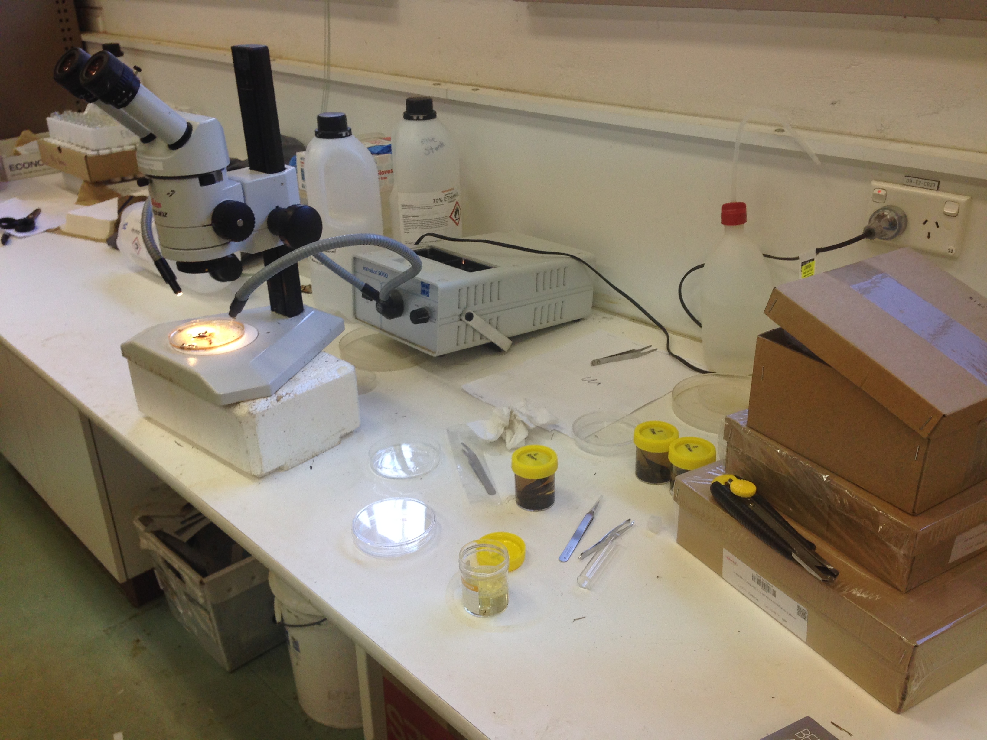 Figure 2. a) light microscope used for beetle sorting