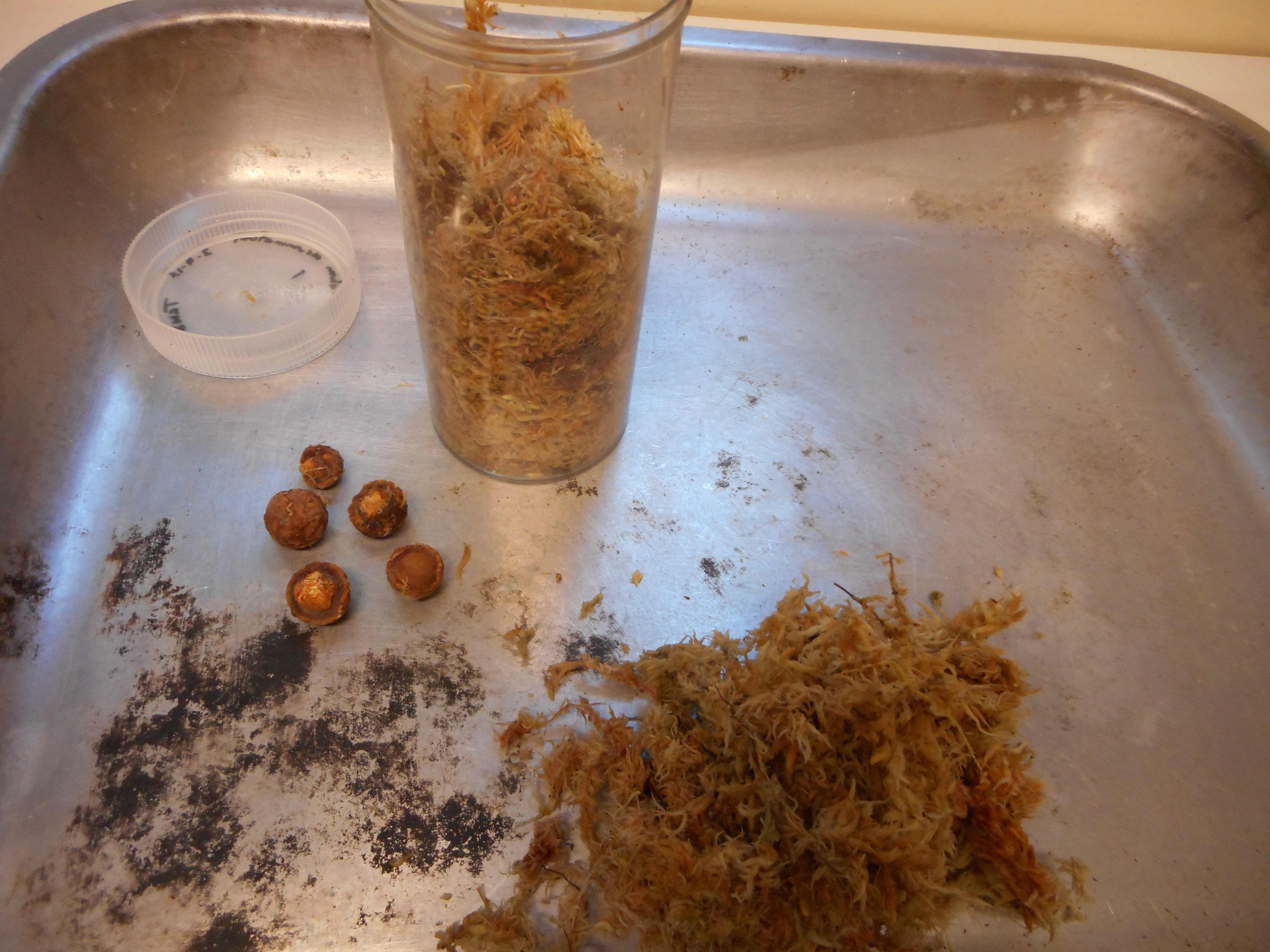 Not much to show for a couple of hours work! Preparing the seed by removing the red-brown fibrous outer fruit was necessary to expose the inner seed and speed up germination (Photo credit to the author).