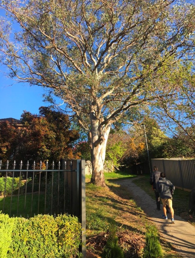 In order to collect useful data that describes the relative importance of older trees in the landscape, at each site we observed bird interactions in young, medium and mature trees. Surveys were conducted in the springtime to correspond with peak bird breeding season and hence bird abundance. Moreover, at each site we would locate trees which were involved in the study (tagged with a nail, however Phil had a surprisingly good memory about the locations of these trees) and recorded various bits of information about the birds which arrived at these trees over a 20-minute period. For example, when a bird landed on a tree we would try and identify its species, the direction in which it came from as well as its departing direction, the bird’s behaviours on the tree (foraging, nesting, or attacking), resources used (live branch, dead branch, angle of branch used, hollows, foliage and seeds), aggressive species interactions as well as the duration of stay. Although it sounds easy enough, this job was actually really difficult. At a mature tree wedged between 2 residential properties in Nicholls (pictured below), we watched an Australian Magpie (Cracticus tibicen) go to town on numerous Indian Mynah birds (Acridotheres trisits) and 2 Wood Ducks (Chenonetta jubata) as it protected its nest. It was almost impossible to record all the interactions that occurred over this period. It was intense!