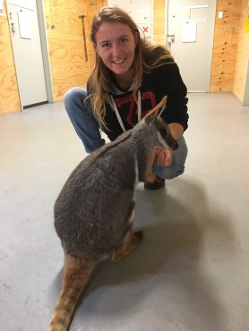 Figure 2. Lily, a Yellow-foot rock-wallaby, and I bonding over nibbles (Fountain 2018)