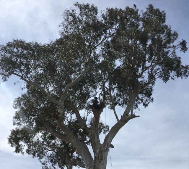 Figure 3. Alex is measuring the physical and biological attributes of a tree hollow on a hollow-bearing tree (Image by Tai Law)