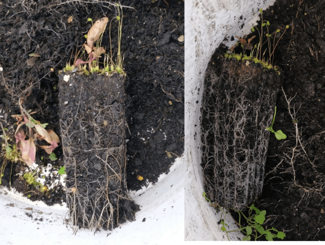 In the picture, the bottom left pot and bottom right pot were apparently shorter than the others. The exceeding weed will also cause the death of plant. As Department of the Environment and energy reported (source link), weeds always “grow faster than native plants and successfully compete for available nutrients, water, space and sunlight.” The native plant will die due to lack of necessary source. During the cleaning of dead plant, the influence of weeds root to the plant has been observed.