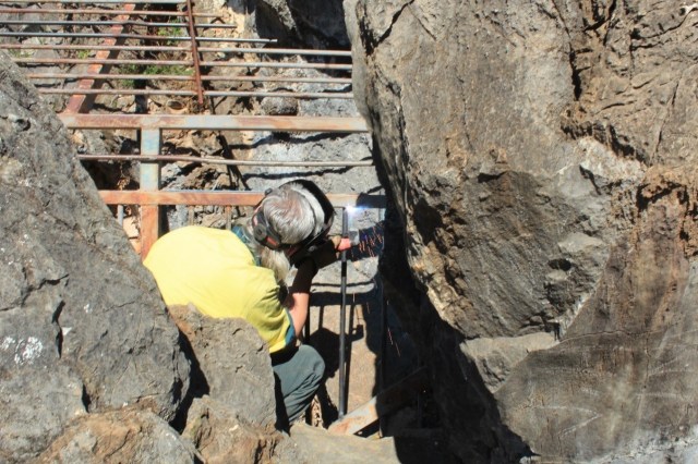 In the afternoon – repairing a fence that is meant to prevent the entrance of people to the caves, which houses bent-winged bats (Miniopterus schreibersii) [9], the fence had been breach to have a party inside. Photo: Nicolás Marín