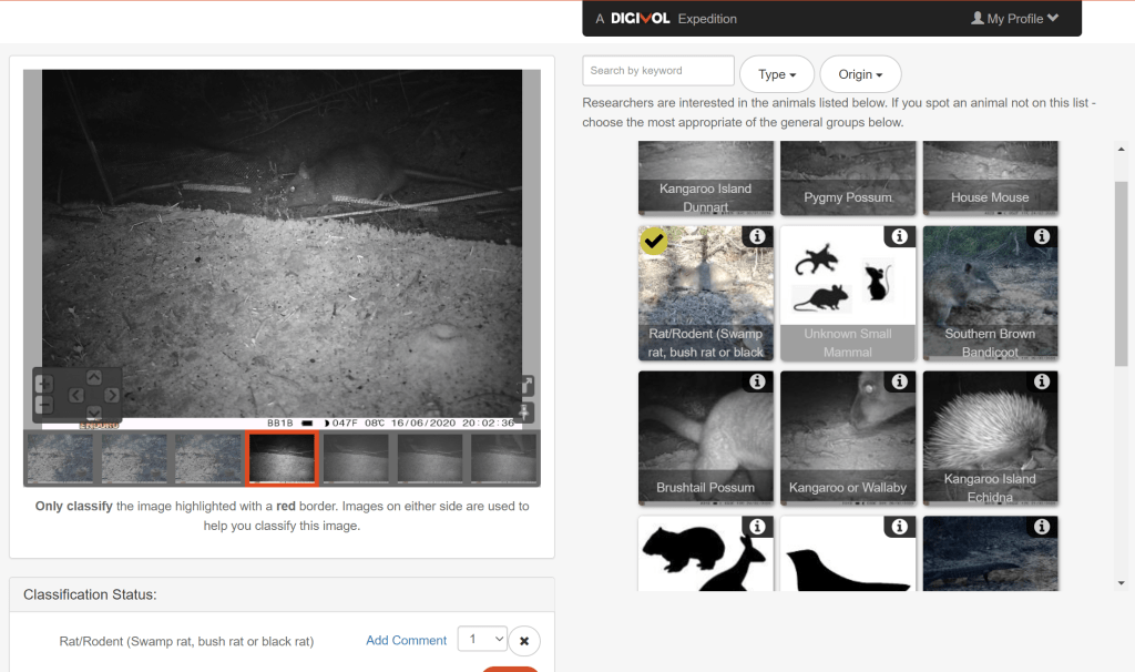 It’s a fun experience, with an addictive quality similar to that of computer games. Funny angles and silly faces periodically left me in hysterics (much to the disdain of my housemates) but the experience was also remarkably eye-opening. I classified far more feral cats than I did small mammals combined and rarely caught a glimpse of the elusive KI Dunnart.