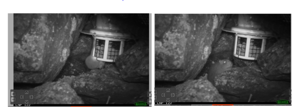 After familiarizing the species identification procedures, I noticed some interesting observations based on the identification experience from the past weeks. For example, when animals find food, the Mountain Pygmy-possums are more likely to hang upside down on the feeder use using its tail while the Bushrat (Rattus fuscipes) usually sniff around the feeder. The Mountain Pygmy-possums were often captured with images of coming in and out of their nest while the Bushrat often moves around the nest.