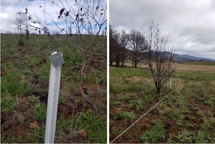 Previous years were spent observing how well the seedlings survive in regards to both: 1) the landscape and, 2) the influence of volunteers maintaining them. However, the Orroral Valley fire that swept through this part of Australia during January 2020 in what is now known as the ‘Black Summer’ presented a new question: to what extent can the seedlings survive and regenerate following fire?