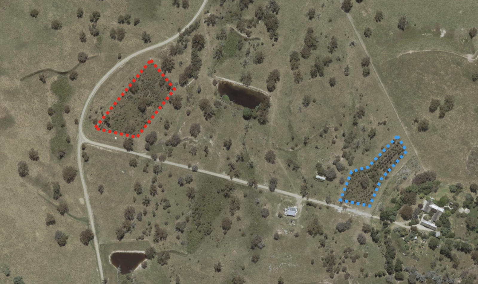 Native forest regeneration requires careful planning, investment, and long-term commitment to ensure biodiversity gains are achieved. For several years, Mr. Larcombe and his family have dedicated much time and resources to restoring native forest across his property that had previously been cleared to make room for cattle. To achieve this, several hundred tube-stock plantings were dug by hand. Although this is a laborious and expensive task compared to alternative methods, it allows seed establishment rates to be maximised.