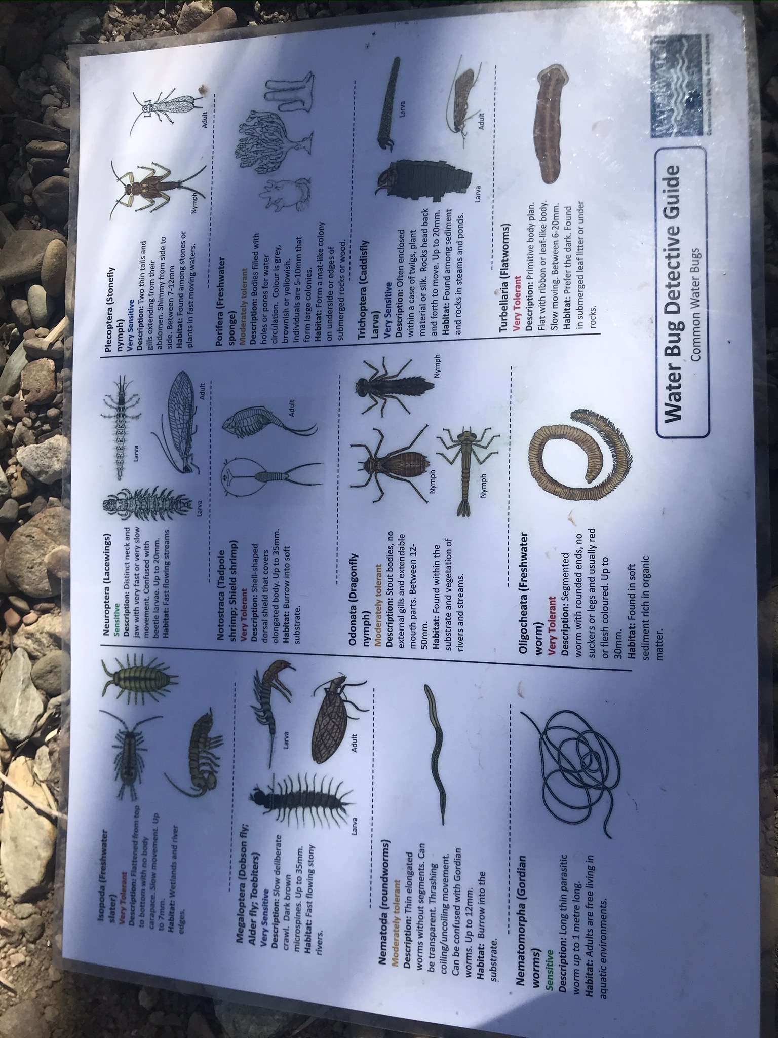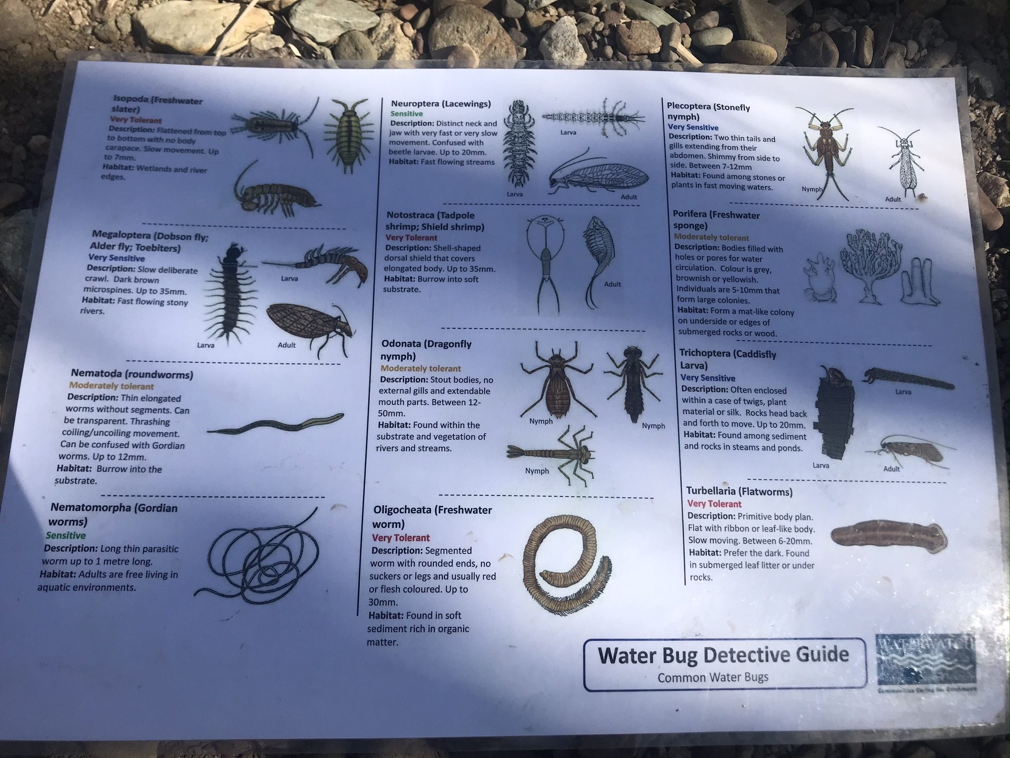 Healthy waterways positively correlate with high biodiversity and there are three common ‘Very Sensitive’ water bugs that are of most use when determining the health of freshwater: Trichoptera (Caddisfly Larva), Plecoptera (Stonefly nymph) and Ephemeroptera (Mayflies). A low abundance indicates to us that there has been a wave of pollution through a section of the river causing these highly sensitive creatures to move away or be killed. On the flip side, a high abundance and diversity of these water bugs tells us that the stretch of freshwater being sampled is healthy and has favourable stable conditions.