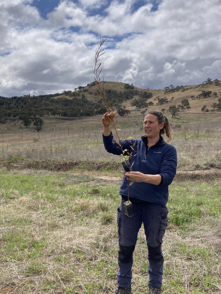 On the 27th of September, 12 ENVS3039 students including myself headed to Scottsdale for a day of work helping to restore a riparian site known as Applebox Creek. This work is part of a larger long-term project to revegetate drainage lines for habitat enhancement and connectivity, as well as water retention and erosion control. Site manager Phil Palmer and field officer Kim Jarvis told us about the history of the site, the work that Bush Heritage does, and some of the major challenges and priorities for the restoration project, before we headed out to Applebox Creek and got our hands dirty.
