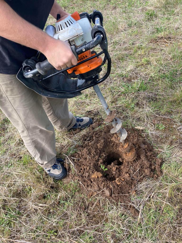 When we visited the reserve we took part in riparian restoration, this involved planting key species of the yellow box woodland such as Apple Box, Red Box, Wallaby grass, Poa Tussock and even some Snow Gums. Further, some course woody debris made up of old fences were scattered around the site to provide a number of ecosystem services. These include; slowing water down to increase the amount absorbed into the soil and creating habitat allowing for movement of insects and birds. The images below display the process of auguring and the area planted.