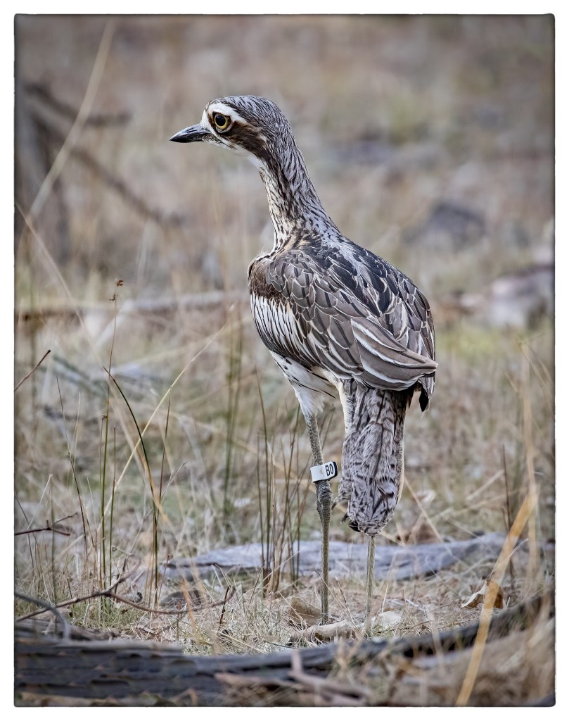 The loss of grassy woodlands impacts the quirky bush-stone curlew (Burhinus grallarius). This enigmatic bird is quite unlike any other. With cryptic plumage and motionless behavior mimicking a branch, curlews rely on CWD to forage, roost, and avoid detection by predators.