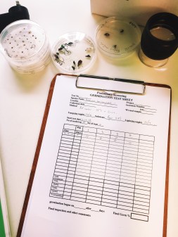 My first few sessions in the lab involved weighing seeds from the different parent trees to find an average weight, and counting out batches of 50 seeds from the samples chosen.